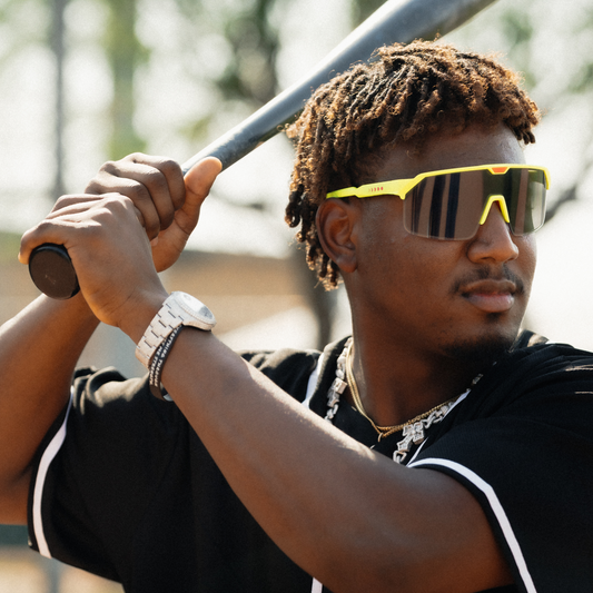 Professional baseball sunglasses with precision manual tint control.